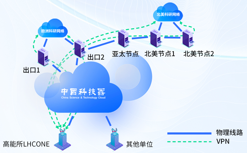 国际台站或项目合作的数据通过专网实现安全、高速和稳定传输。 中国科技网拥有多条国际线路,2023年开通我国首条100G中欧科研专用线路,在香港、新加坡、西雅图、芝加哥等建有骨干开放交换节点,分别与欧洲、美国、韩国、日本、中亚、大洋洲、非洲与南美等实现了高速互联,不仅有力支持LHC、ITER、SKA、SDG等国际大科学合作计划,更为气象预测、人口健康、空间科学等人类共同面临的科研挑战和科学探索提供安全高效的全球信息资源支撑。