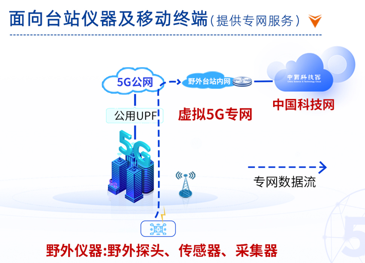 面向台站/大装置/野外监测系统接入需求,通过5G网络提供网络出口(备份)链路、专网服务,还能提供5G+卫星组网服务。