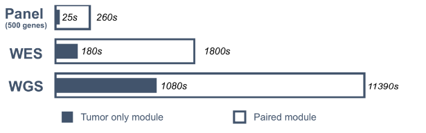 MSIsensor2在性能上实现了很大的突破。使用不同类型的数据(117个样本)进行测试,MSIsensor2的Tumor only 模块比MSIsensor的Paired模块快10倍,其中WES数据可以在180秒内完成。