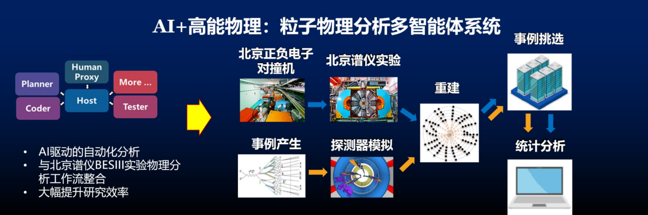 基于磐石我们构建了粒子物理分析多智能体系统,实现了 AI 驱动的工作流,自动化和优化数据处理和分析的流程,大幅提升粒子物理分析的可靠性和效率。粒子物理大科学装置是拓展人类认知前沿的重要工具,基于磐石-科学工具调度台我们开发了物理信息嵌入的粒子径迹重建 AI 工具,使重建效率提升 25%。