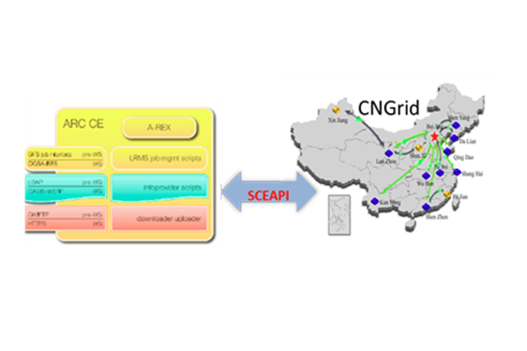 ATLAS是一个全球合作的高能物理实验。基于ArcCE(网络中间件的计算资源管理器)合作开发了针对中国国家网格环境系统软件SCE的插件(由中科院计算机网络信息中心与CERN联合开发),将网络上的ATLAS作业通过"桥接"的方式转发到国家高性能计算服务环境。
